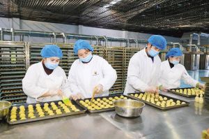 在霍爾果斯馕產(chǎn)業(yè)園里,面點(diǎn)師傅正在制作用于出口俄羅斯的馕。 新華社發(fā)