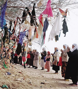 在新疆,尤其是在維吾爾族聚居的南疆,普遍存在類似內(nèi)地廟會(huì)式的麻扎朝拜活動(dòng)。朝拜者面向麻扎傾訴心中的哀怨痛苦,以各種方式表達(dá)自己的祈求:有向麻扎求消災(zāi)避禍的,有求富貴發(fā)財(cái)?shù)模€有求夫妻和睦的,求理想伴侶的,求生兒育女的,求老有所養(yǎng)的,求天降甘霖的……