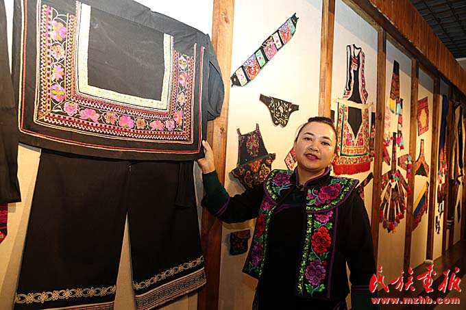 走進(jìn)楚雄索玉文化美學(xué)創(chuàng)意有限公司,女老板盧潔瑩身穿一身自己設(shè)計(jì)的彝繡服飾,正俯身指導(dǎo)著員工。盧潔瑩說:“別看我愛穿彝族服裝,其實(shí)我是漢族啦。父母是廣東人,但是我在這里長(zhǎng)大,從小就熱愛彝族文化?!北R潔瑩還經(jīng)常下鄉(xiāng)采風(fēng),向當(dāng)?shù)匾妥謇C女學(xué)習(xí)傳統(tǒng)彝繡知識(shí),再把傳統(tǒng)圖案與現(xiàn)代元素相融合,盧潔瑩說:“傳統(tǒng)與現(xiàn)代相融合的彝繡成品更能滿足消費(fèi)者的需求,更能帶來高收入。”
