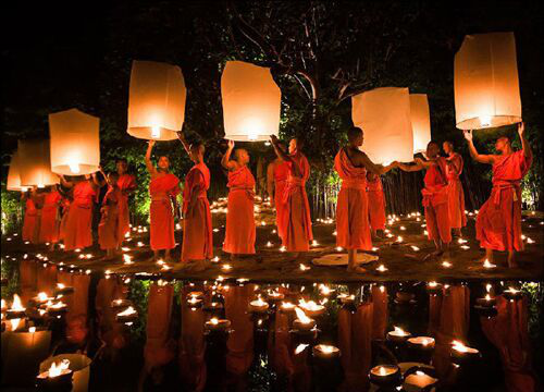 “奧瓦薩”時(shí)間在傣歷1 2月1 5日(陽(yáng)歷9月中旬)。這一天,表示從“關(guān)門(mén)節(jié)”以來(lái)的安居齋戒期已滿,男女老幼皆盛裝去佛寺里拜佛,以食物、鮮花、蠟條、錢(qián)幣獻(xiàn)佛,向佛祖懺悔,祈求佛祖賜福降平安,同時(shí)舉行盛大的娛樂(lè)集會(huì),“章哈”演唱,放高升、晚上放焰火、放孔明燈等,慶祝開(kāi)門(mén)節(jié)。此時(shí),雨季已過(guò),稻谷收割完畢,故也稱為慶祝豐收的節(jié)日。
