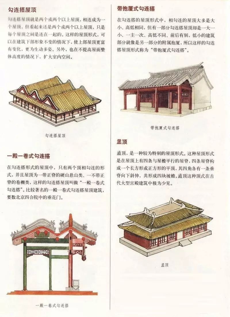 中國古建筑屋頂千變?nèi)f化,瑰麗多姿,不同的屋頂相互組合、穿插,又會形成不同的屋頂形式。