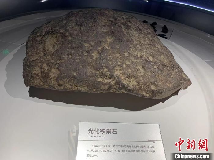 據(jù)介紹,湖北省共發(fā)現(xiàn)7處隕石地點。1976年,湖北光化縣(今老河口)發(fā)生隕石雨,這塊隕石就是地質工作者當時在光化縣找到的。