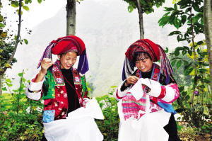 當(dāng)?shù)氐牟家雷鍕D女在繡花