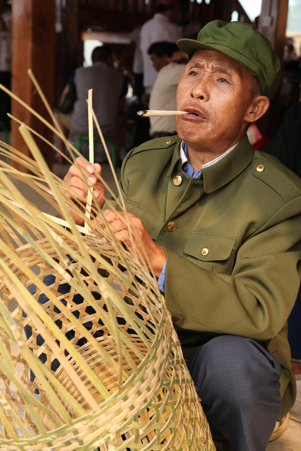 (1)竹編。布朗族居住地盛產竹子和藤篾,家庭用具、生產工具多偏愛竹制品。每一個布朗族成年男子都會編織各種竹器,如篾籮、飯盒、簸箕、篾席、背簍、篾桌、針線盒等。這些手工藝品多數自用,剩余的拿到壩區(qū)市場進行交換。也有少數人以編制竹器為生。布朗族男女都會編制蓋房用的草排。