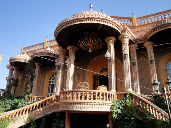 維吾爾族的建筑物有其獨特風格。房屋方形,有較深的前廊;室內(nèi)鑿壁龕,并飾以各種花紋圖案。舊式房屋多系土木結構,窗子較小,房頂開一個窗,通風采光差;室內(nèi)進門有一連灶土炕,用來做飯取暖。平房一般比較講究寬敞明亮通風。廳室布置整潔樸雅,四壁呈白色泛藍,掛的壁毯,靠墻置床,被褥均展鋪于床罩或毛毯之下,床上只擺設一對鏤花方枕。室中央置長桌或圓桌,家具及陳設品多遮蓋有鉤花圖案的裝飾巾,門窗掛絲絨或綢類的落地式垂簾,并襯飾網(wǎng)眼針織品。地面多裝飾民族圖案。維吾爾族人喜歡在庭院中種植花卉、果樹和葡萄,整個環(huán)境顯得雅靜、清新。