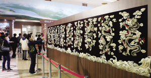 用優(yōu)質(zhì)大馬哈魚皮手工制作的工藝品”九龍壁”