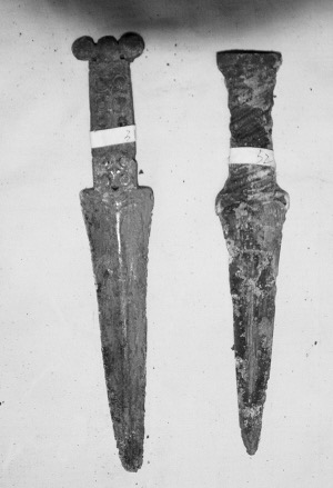 2006年,涼山州文化局請文物專家鑒定了公安機(jī)關(guān)收繳的鹽源文物,鑒定現(xiàn)場有3把雙環(huán)首青銅短劍。其中一把青銅短劍長27厘米,一把長27.5厘米,還有一把26厘米,均為戰(zhàn)國至漢代時(shí)期文物。