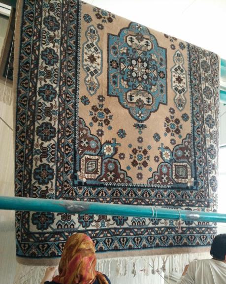維吾爾族婦女制作新疆地毯(圖片來(lái)自淘寶網(wǎng))