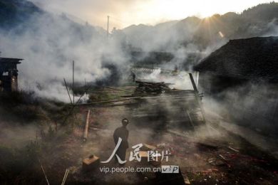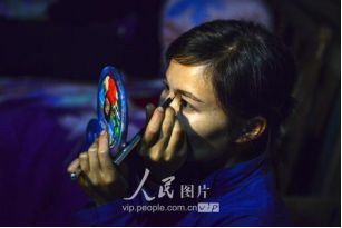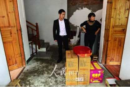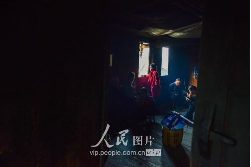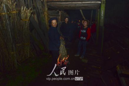 一般要到快過春節(jié)的時(shí)候,男方家才專門請人去接女方來洗糯米、打糍粑,新娘方能在夫家住上一夜;在來年農(nóng)忙時(shí)節(jié),又接女方來幫忙,夜里仍不能在男方家留宿,幫完忙當(dāng)晚即回去,只有待到女方有身孕后,新娘才到夫家長住。圖為11月16日夜,新娘潘芝銀家為準(zhǔn)備婚禮,燈火徹夜長明。