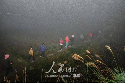 新娘之所以“不落夫家”,一是仍要報(bào)答父母的養(yǎng)育之恩;二是舍不得童年伙伴,還要回到寨子里與伙伴們伴做伴,最長可達(dá)三年之久;直到同伴都有了對象才分散,新娘方到新郎家長住下去,這樣的奇趣婚俗也在黔東南的一些侗族地區(qū)一直得以保存下來。圖為11月17日凌晨,新郎家派來的娶親隊(duì)伍點(diǎn)著火把前來娶親。
