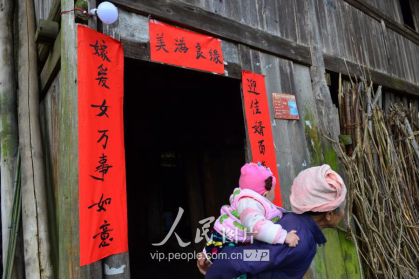 11月17日,新娘潘芝銀家門前張貼的結(jié)婚喜聯(lián)。