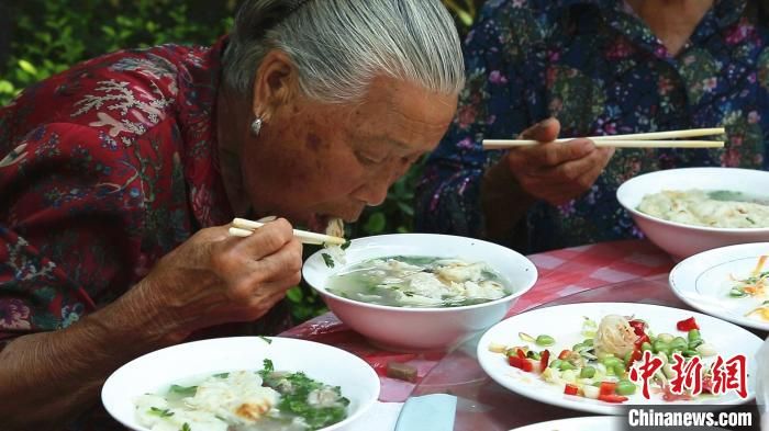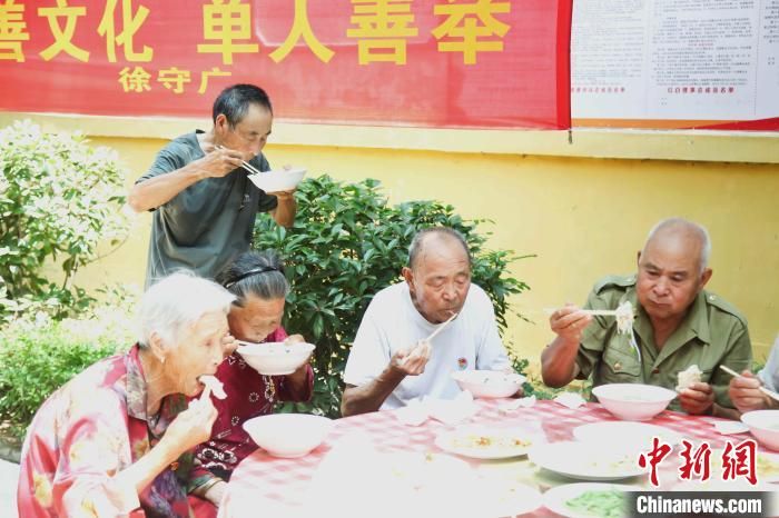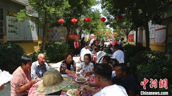 “孝善羊湯宴”將伏羊節(jié)推向高潮,當?shù)卮迩f免費請“孝善人家”代表等“喝伏羊”。 付宏 攝