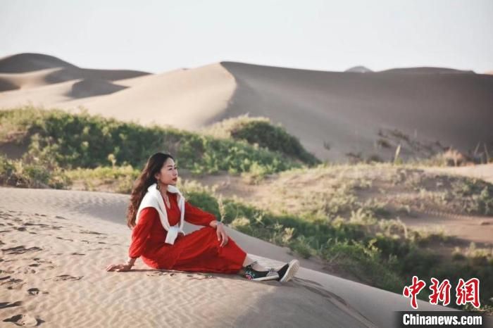 圖為瑪爾健坐在甘肅肅南縣的沙漠一隅,回憶過去,感受家鄉(xiāng)多年來的變化。(資料圖) 瑪爾健供圖