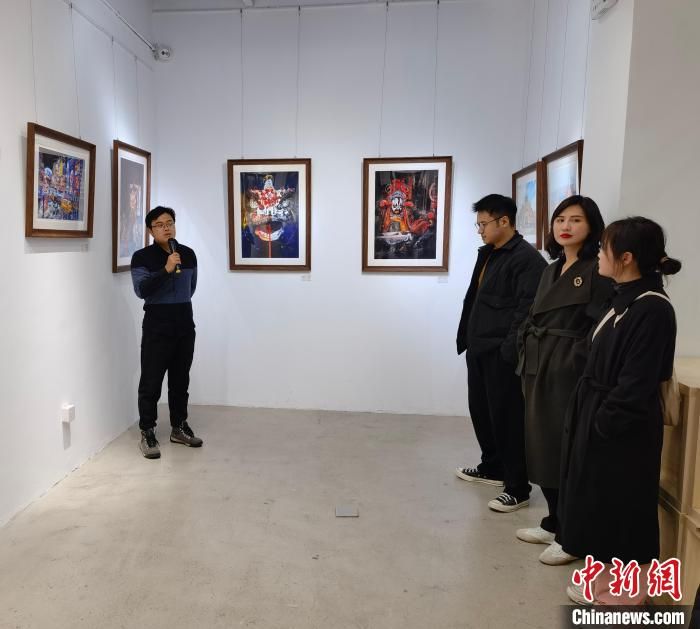 “醒獅、京劇臉譜……”濃厚亮麗的色彩會就的中國傳統(tǒng)民俗風貌,當晚在霸都書局亮相后,便吸引了很多青年藝術愛好者觀賞。