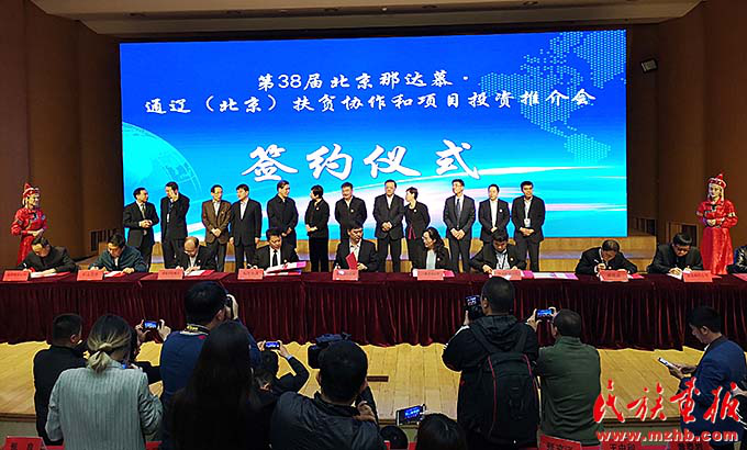 第38屆北京那達(dá)慕通遼(北京)扶貧協(xié)作和項(xiàng)目投資推介會(huì)簽約儀式(王金梅 攝影)