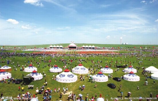 “那達(dá)慕”蒙古語為“娛樂”或“游戲”音譯。為蒙古族的傳統(tǒng)節(jié)日,據(jù)傳始于漢代。一年一度由一旗或數(shù)旗聯(lián)合在農(nóng)歷七八月舉行,每次一至數(shù)日,規(guī)模大小不一。是時(shí)正是草原上氣候怡人、綠草如茵、百花盛開、牛羊肥壯的黃金季節(jié)。節(jié)日期間,牧民們身穿節(jié)日新衣,乘馬驅(qū)車,從四面八方匯聚一處。一時(shí)草原上五彩旗幟如霞云飄掠,蒙古包如點(diǎn)點(diǎn)珍珠,一片節(jié)日氣象。大會(huì)上不僅有傳統(tǒng)的賽馬、摔跤、射箭等競(jìng)技項(xiàng)目,拔河、藍(lán)球、下蒙古象棋等體育比賽,而且還有豐富多彩的文藝演出和琳瑯滿目的物資貿(mào)易交流。如今那達(dá)慕大會(huì)已經(jīng)成為草原上集體育比賽、文化娛樂、經(jīng)濟(jì)貿(mào)易、慶賀豐收為一體的綜合性盛大節(jié)日。