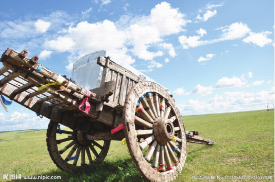 蒙古族牧民常用的一種木制大輪車。多用樺木或柳木制做。車輪高約1米,車身重約百斤,可載重300—450公斤,日行約30余公里。每車用一頭牛來拉,一人可駕馭數(shù)輛,適于在草原、沙漠、雪地等行走。亦可將數(shù)十輛勒勒車首尾相接形成近百米長(zhǎng)的車隊(duì),十分壯觀,也形成了草原上特有的風(fēng)情?,F(xiàn)在已多被膠皮鐵輪的軸承車所替代。另外還有一種“蒙古轎車”,是一種在勒勒車基礎(chǔ)上經(jīng)過改造專門乘人的車。其與勒勒車不同之處在于車體上有用柳條子彎曲后扎成的車棚,棚子的外面用毛氈包圍,形成一個(gè)既擋陽光,又擋風(fēng)雨,防曬御寒的帳篷。