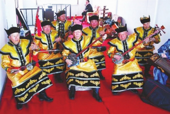 有阿斯?fàn)柟爬系膶m廷器樂合奏曲,流傳于原察哈爾地區(qū)。阿斯?fàn)栕钤鐬槊晒艑m廷宴樂,清朝后期開始流行于察哈爾民間,一般在祭祀敖包、祝壽、婚宴、小孩生日等活動(dòng)上演奏。此外,還有馬頭琴、四胡演奏和好來寶蒙古族民間說唱藝術(shù)。