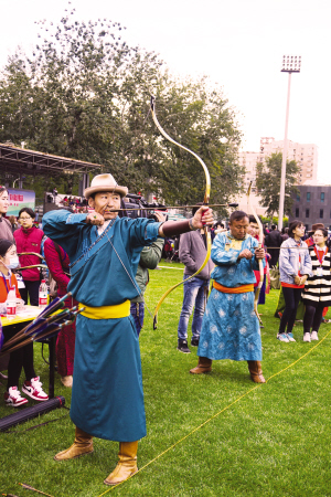 2016年10月22日,中央民族大學(xué)操場上熱鬧非凡。悠揚(yáng)的馬頭琴聲,飄香的奶酒,繽紛絢麗的蒙古族服飾,搏克、射箭等競技活動(dòng)以及蒙古族特色產(chǎn)品展銷,把首都的一方土地變成了蒙古族傳統(tǒng)節(jié)慶活動(dòng)的歡樂海洋。據(jù)統(tǒng)計(jì),當(dāng)天有兩萬多名在京蒙古族同胞及來自全國各地的各族群眾自發(fā)參與了這場民間活動(dòng)。