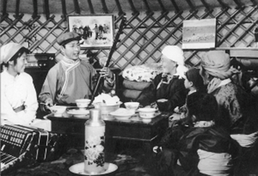 烏蘭牧騎的全國巡演,源于1964年底的全國少數(shù)民族群眾業(yè)余文藝觀摩匯演。當時內蒙古自治區(qū)文化局從全區(qū)各旗縣抽調15名藝術骨干,組成烏蘭牧騎代表隊,進京匯報演出。進京匯演以蒙古族傳統(tǒng)歌舞形式為主,如蒙古族說書“好來寶”、馬頭琴獨奏、安代舞、頂碗舞等。這些歌舞、說唱無論在過去還是現(xiàn)在,都是蒙古族音樂藝術的典型代表。但就這些藝術形式所表現(xiàn)的具體內容而言,則以反映當時社會政治文化生活主題的作品占絕大多數(shù),如《巡邏之夜》、《為祖國鍛煉》、《達西是個好戰(zhàn)士》、《唱支山歌給黨聽》、《紅旗一代傳一代》等。進京之后烏蘭牧騎演員受到國家領導人的接見,并由周恩來總理提議向全國推廣。短小精悍的藝術表演形式,濃郁的民族風情,使其成為傳播民族政策和促進民族團結的有力工具。