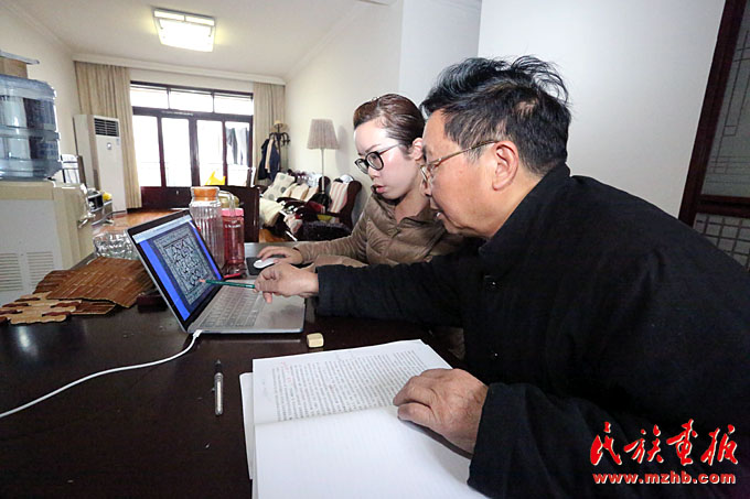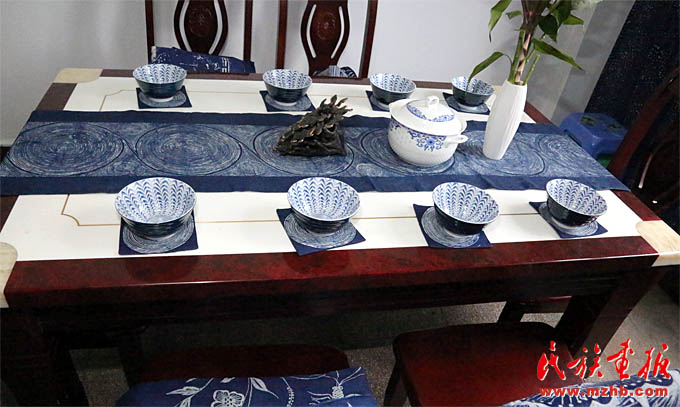 楊文斌老師和她的夫人梁定芳老師都是“非遺”傳承人。現(xiàn)在他們忙著著書、講學(xué)、開研討會(huì)。談起蠟染、談起民族民間工藝,楊文斌老師滔滔不絕:“現(xiàn)在要從三個(gè)方面認(rèn)識(shí)和研究民族民間工藝:一是從歷史學(xué)、人類學(xué)、民族學(xué)的角度解讀,二是從審美學(xué)、藝術(shù)視覺理念的角度解讀,三是從工藝學(xué)、材料學(xué)、技藝學(xué)的角度解讀?,F(xiàn)在植物染料的加工和染色技藝消失得很快。老祖宗留下的寶貝到我們這代可不能扭曲和斷裂。”