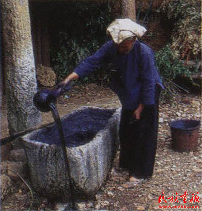 制作藍靛是一件普通卻又很神圣的事情,藍靛里蘊藏著黑衣壯崇拜的黑色