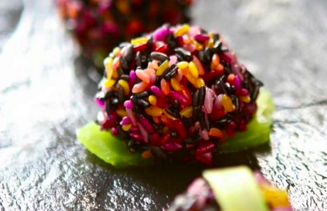 米飯常捏成飯團(tuán),便于攜帶,食之口味又別具一格。彩色糯米飯也捏成飯團(tuán),不同顏色的飯團(tuán)陳列在一起,鮮艷奪目。彩色飯的色彩原料,不僅起到著色的作用,也起到調(diào)味的作用,不同的色飯有不同的香味。米飯經(jīng)著色處理后,不易餿、不易壞,米飯著色起到了防腐、保鮮的作用。
