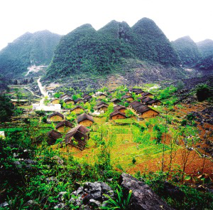 廣西百色地區(qū)那坡縣村落。村寨多隨地形與山勢(shì),布局自由分散,既不存在縱橫軸線,也沒(méi)有明顯的村寨邊界。受地形影響,村寨規(guī)模一般不大