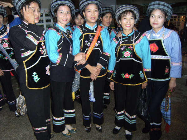 西南地區(qū)的服飾分布地區(qū)包括貴州省黔南布依族苗族自治州羅甸,黔西南州望謨、冊(cè)亨、貞豐、安龍、興義、興仁、安順市的鎮(zhèn)寧、關(guān)嶺、紫云三縣的南部以及云南省羅平等縣(市),基本上都屬于布依語第一土語區(qū)。這個(gè)地區(qū)婦女普遍穿大襟衣、長(zhǎng)褲腳。衣服的盤肩、袖口、襟沿鑲有蘭干。褲腳為大褶邊,或藍(lán)色褲腳鑲一截青布和蘭干。衣服的長(zhǎng)短和褲腳的大小,各地區(qū)都不相同。冊(cè)亨一帶衣服較短,褲腳短小,包花格長(zhǎng)帕,胸頸掛彩珠項(xiàng)圈,手套玉石或骨制手鐲;望謨一帶青年婦女把花格帕折疊后纏戴;貞豐一帶的衣服較長(zhǎng),褲腳不折邊,青年和老年婦女基本相同,但青年婦女包的花帕形狀如牛角(人稱“牛角帕”);靠近北部地區(qū),衣褲都較長(zhǎng),而且不鑲蘭干,衣褲和帕子多為青色;安龍、興義一帶則多包白帕,衣褲亦不鑲蘭干;西南一帶地區(qū)衣褲已漸不鑲蘭干,但還穿自織的土布衣服,頭上還包花格帕,一些地區(qū)與漢族婦女裝束完全一樣了。