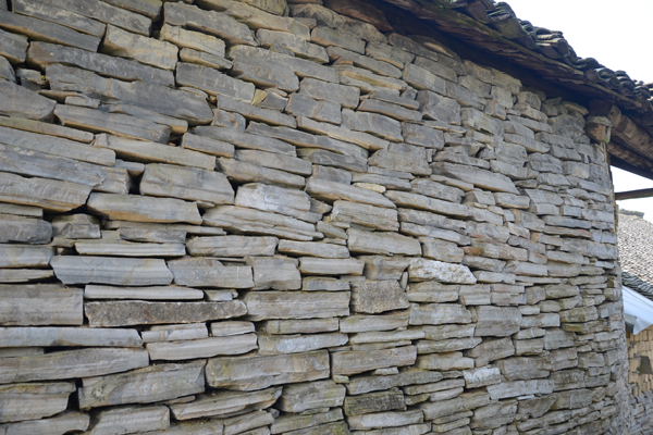 石板房以石條或石塊砌墻,墻可壘至5至6米高;以石板蓋頂,風雨不透??傊?,除檁條、椽子是木料外,其余全是石料,甚至家用的桌、凳、灶、缽都是石頭鑿的。一切都樸實無華,固若金湯。這種房屋冬暖夏涼,防潮放火,相對采光較差。