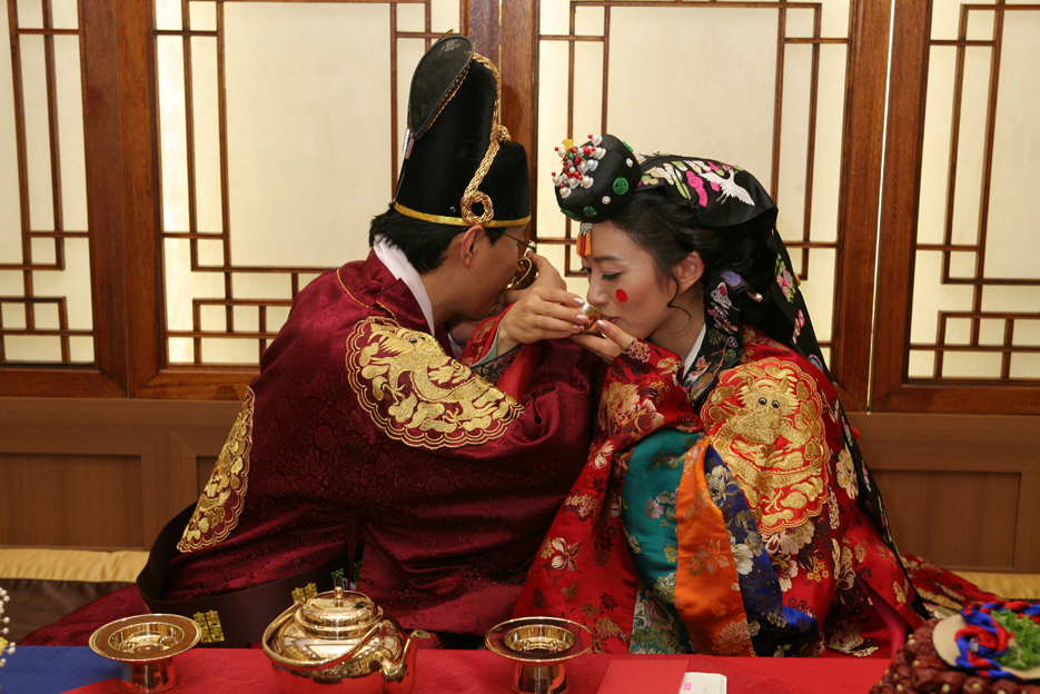 在過去,朝鮮族婚俗沿用中國古代的六禮習俗,非常傳統(tǒng)復雜,禮儀繁多?,F(xiàn)如今朝鮮族人民的婚俗雖然受到時代變遷的影響,進行了一定的簡化,但是整體流程和習俗仍保留了朝鮮族特有的特點。從婚前、結(jié)婚到婚后都有著特定的程式,主要有納彩、納幣和迎親3個程序,在這些程序中又貫穿著多種禮儀。