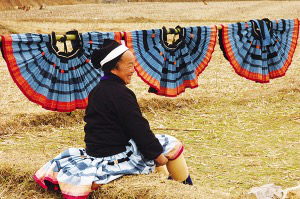 晾曬盛景。白褲瑤女人衣上的神秘之藍,就是這樣經過蠟染晾曬而成的