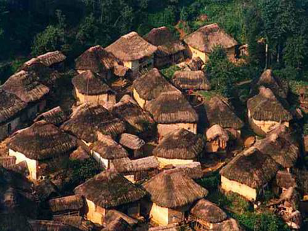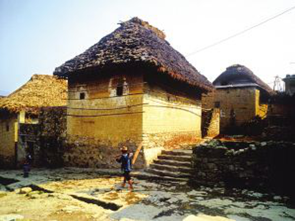 蘑菇房由土基墻、竹木架和茅草頂組成,屋頂為四個(gè)斜坡面。房子一般分三層:底層關(guān)牛馬堆放農(nóng)具等;中層用木板鋪設(shè),隔成左、中、右三間,中間設(shè)有一個(gè)常年煙火不斷的方形火塘;頂層則用泥土覆蓋,既能防火,又可堆放物品。蘑菇房造型美觀,別具一格。冬暖夏涼。