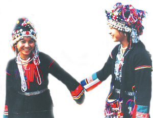 哈尼人是哈尼族的一個(gè)支系,大部分居住在云南省的瀾滄、孟連、景洪、勐海四縣的崇山峻嶺中。哈尼人勤勞勇敢,能歌善舞。在景洪縣的哈尼人山寨里,哈尼姑娘落落大方地為來(lái)客唱歌跳舞。由于特殊的地理環(huán)境,尤其是山高路遠(yuǎn)交通不便,哈尼人受外來(lái)文化影響較小,自然的封閉狀態(tài)較完整地保留了原始古樸的民風(fēng)民俗。其中最引人注目的是哈尼姑娘那峨冠錦繡的頭飾。無(wú)論在云霧繚繞的山寨,還是在榕蔭繁喧的集市,以及在林木蔥郁的山道上,隨處可看到哈尼姑娘們頭戴裝飾物的奇特繁多,猶如一件件精湛的工藝品頭飾,令人目不暇接,贊嘆不已。
