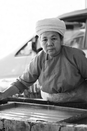 傣族老大媽制作的構(gòu)紙