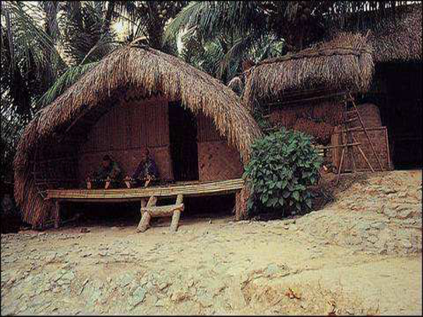 船型屋作為黎族最古老的民居,有高架船型屋與低架(落地式)船型屋之分,其外形像船篷,拱形狀,用紅、白藤扎架,拱形的人字屋頂上蓋以厚厚的芭草或葵葉,幾乎一直延伸到地面上,從遠(yuǎn)處看,猶如一艘倒扣的船。其圓拱造型利于抵抗臺(tái)風(fēng)的侵襲,架空的結(jié)構(gòu)有防濕、防瘴、防雨的作用,茅草屋面也有較好的防潮、隔熱功能。而且能就地取材,拆建也很方便。鑒于這些優(yōu)點(diǎn),船形屋得以世代流傳下來。