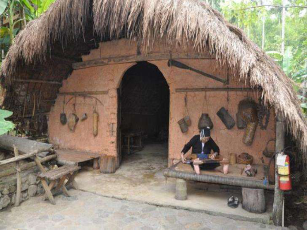 船型屋長而闊,茅檐低矮,這樣的風(fēng)格有利于防風(fēng)防雨。房子分為前后兩節(jié),門向兩端開,茅草屋中間立三根高大的柱子,黎語叫“戈額”,“戈額”象征男人,兩邊立6根矮的柱子,黎語叫“戈定”,“戈定”象征女人,即一個(gè)家是由男人和女人組成。墻體用泥土筑成,屋形狹長、屋檐低矮。大多數(shù)的船形屋長14.7米,寬6米,屋高3.2米。房子分為前后兩節(jié)。四壁用樹枝扎成方格形,再用用稻草和泥糊墻。前后兩個(gè)門用木板制成,門向兩端開。