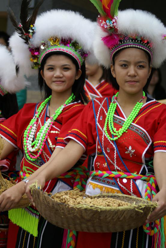 高山族過(guò)去以裸身為美,裸形赤足,僅以獸皮、樹(shù)皮及植物纖維制作的幅布蔽體,有鑿齒、穿耳的習(xí)俗。接觸漢文化后,逐步形成了男著長(zhǎng)衫、女著裙裝的習(xí)慣,衣服除了獸皮和樹(shù)皮外,還喜好用自織麻布,飾以彩色紋樣。