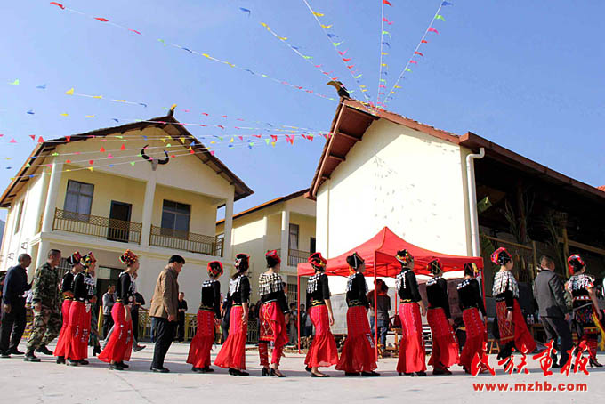 在簡單的入住儀式上,到場的梁河縣領導為拱母新村村民發(fā)放了象征著開啟新生活的“鑰匙”。梁河縣信用聯社還向拱母新村捐贈5000元。村民與周邊的各族群眾載歌載舞,表達著搬入新居的歡樂。