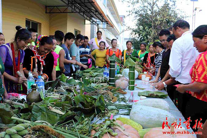 春節(jié)前,景頗族群眾準備豐富的食材