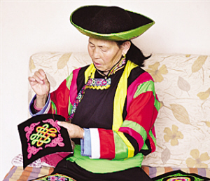 目前,在松德村,依靠盤繡為家庭創(chuàng)收的土族婦女占全村婦女總數(shù)的60%,每逢當(dāng)?shù)丶谢蛑苓呧l(xiāng)鎮(zhèn)舉辦才藝展示活動(dòng)時(shí),她們就帶上自己的盤繡作品去展示、參賽。