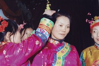 到了預(yù)定的時(shí)辰,新娘該“上馬”了。阿姑們將娶親人的馬鞍等物藏起來,并圍著馬頭唱起了《上馬曲》,悲傷的詞曲中阿姑們向即將出嫁的新娘一一道別,對(duì)娶親者提出種種要求,只有具備這些條件,新娘才能上馬: