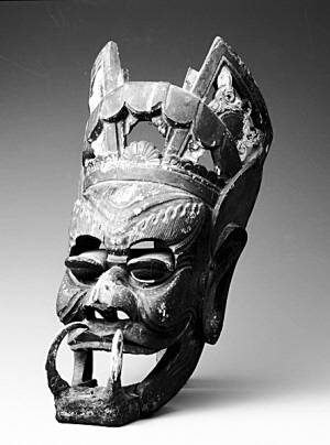 珍藏于民族文化宮博物館的這件仡佬族儺面具“山王”,是仡佬族儺文化的代表。它頭戴高大的雕花冠,大耳,尖...
