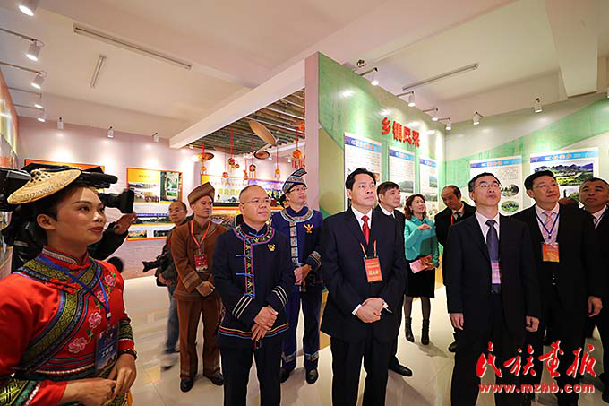 參加環(huán)江毛南族自治縣縣慶活動的全國人大民委、國家民委祝賀團和廣西壯族自治區(qū)代表團、河池市代表團成員參觀環(huán)江縣經(jīng)濟社會發(fā)展成就展