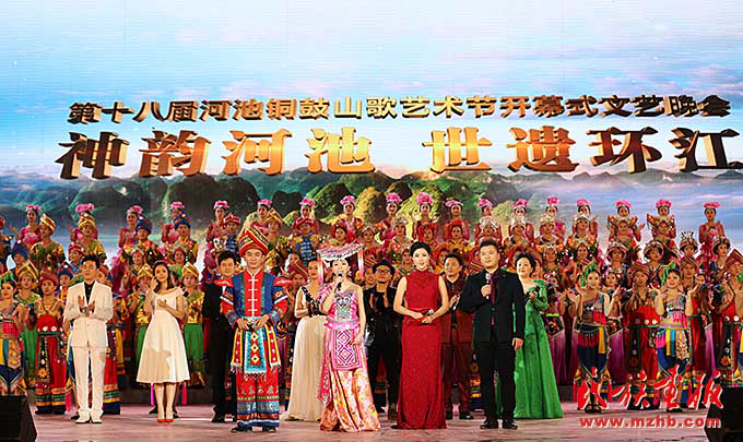 環(huán)江毛南族自治縣舉辦“神韻河池,世遺環(huán)江”第十八屆河池銅鼓山歌藝術(shù)節(jié)開幕式文藝晚會