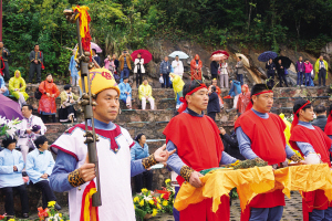 煙雨迷蒙中,頭飾百合花的童男童女,手捧水果籃的少男少女,以及身著傳統(tǒng)服飾的老年男女等,在祭師的帶領下...