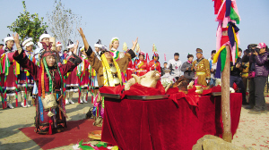 赫哲族漁民捕魚時(shí)首先要舉行隆重的祭江儀式。今年的捕魚開江儀式和大馬哈漁獵文化節(jié)同時(shí)舉行,由當(dāng)?shù)睾照茏宕笏_滿尤軍帶領(lǐng)眾人在烏蘇鎮(zhèn)的抓吉山下的江邊舉行。抓吉是赫哲語“濕地上一片高崗”的意思。赫哲族的漁民們認(rèn)為,捕魚是向大江索取,因此,捕魚前必須要祭江神,以保佑漁民出江出海平平安安,滿載而歸。