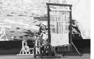 藏毯展會上,演員藝術地表現了藏毯傳統(tǒng)編織技藝。賈海元攝