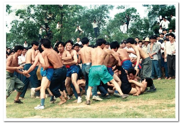 待賀節(jié)隊回到主會場,花炮節(jié)正式開始,首先是舞獅表演,接著蘆笙、卡羅舞表演,斗馬、斗鳥以及賽馬等活動各自展開。這些活動告一段落后,最精彩的節(jié)目——搶花炮開始了,人們像潮水般涌向主席臺前,圍成一個幾十個平方米的空地作搶花炮場地。搶花炮分一、二、三等,搶三次,得勝者,抬著漂亮的花炮頭及獎品興高采烈地回村了。