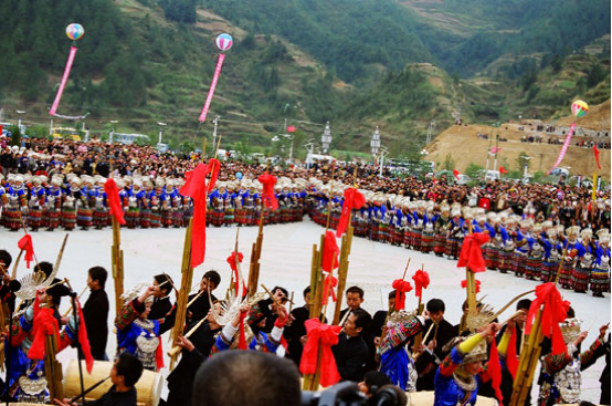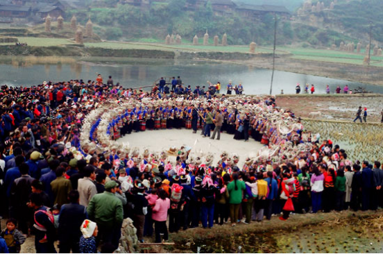 貴州雷山苗族至今仍保留“以十月為歲首”的紀(jì)年法。每年的農(nóng)歷十月,雷山苗寨一派歡騰,開展極富特色的辭舊迎新活動。